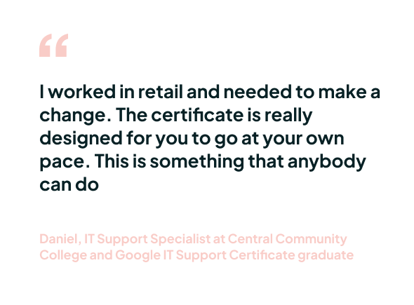 Daniel, IT Support Specialist at Central Community College and Google IT Support Certificate graduate